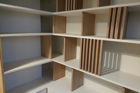 Le clou du spectacle, mais en mieux, la série « Claus du spectacle » est un agencement avec claustra et meuble d’entée. Cela permettra une séparation de vos espaces sans se couper la lumière naturelle.