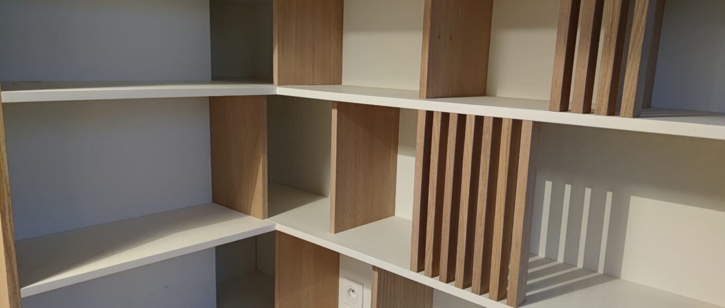 Meuble sur-mesure en latté chêne, médium Fibraplast